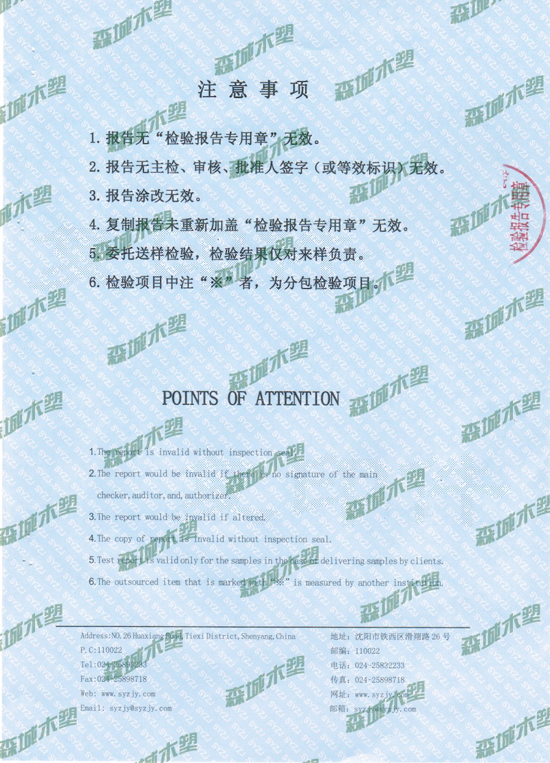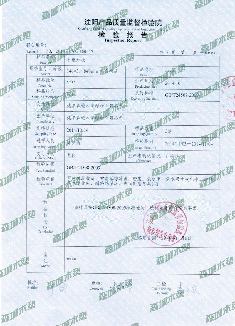 沈阳森城木塑型材有限公司是一家生产环保复合新型材料的高新技术企业,作为国家重点支持的高新技术企业,森城公司一直致力于推动循环经济发展。并一直坚持以环保为己任,市场为导向,科技为基础质量为中心;专注、专心、专业从事再生木的研发、生产和销售。 森城公司与WPC国际领先技术研发机构合作,共同开发再森的各系列产品,不断提高产品质量与设备产能。坚持过程管理,建立检查设备齐全的实验室,并严格执行ISO9001:2000质量管理体系和ISO14001:1996环境管理体系,以生产过程的高标准确保再森木产品的高品质。 公司首期购进十多条各种型号型材生产线,年生产力达万吨,有雄厚的发展实力。公司再生木产品广泛应用于物流、包装、园林景观、室内装修等领域的货架托盘、各种平台、栏杆、布道、树池,户外桌椅等,亦可为客户提供各种截面的型材。所有产品组装方便,坚实耐用,符合市场需求,深受用户青睐。